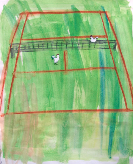 tempera, ink, correction fluid and water-colour pencil on paper
